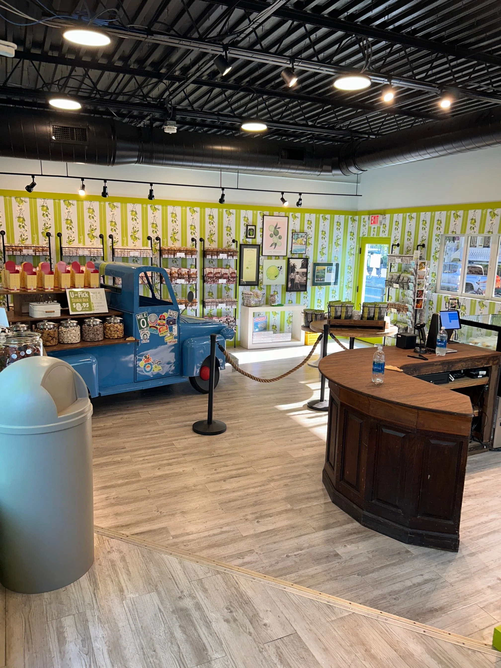 Once just a office for employees, the space was redesigned to have a large lobby to accommodate tour bus groups.