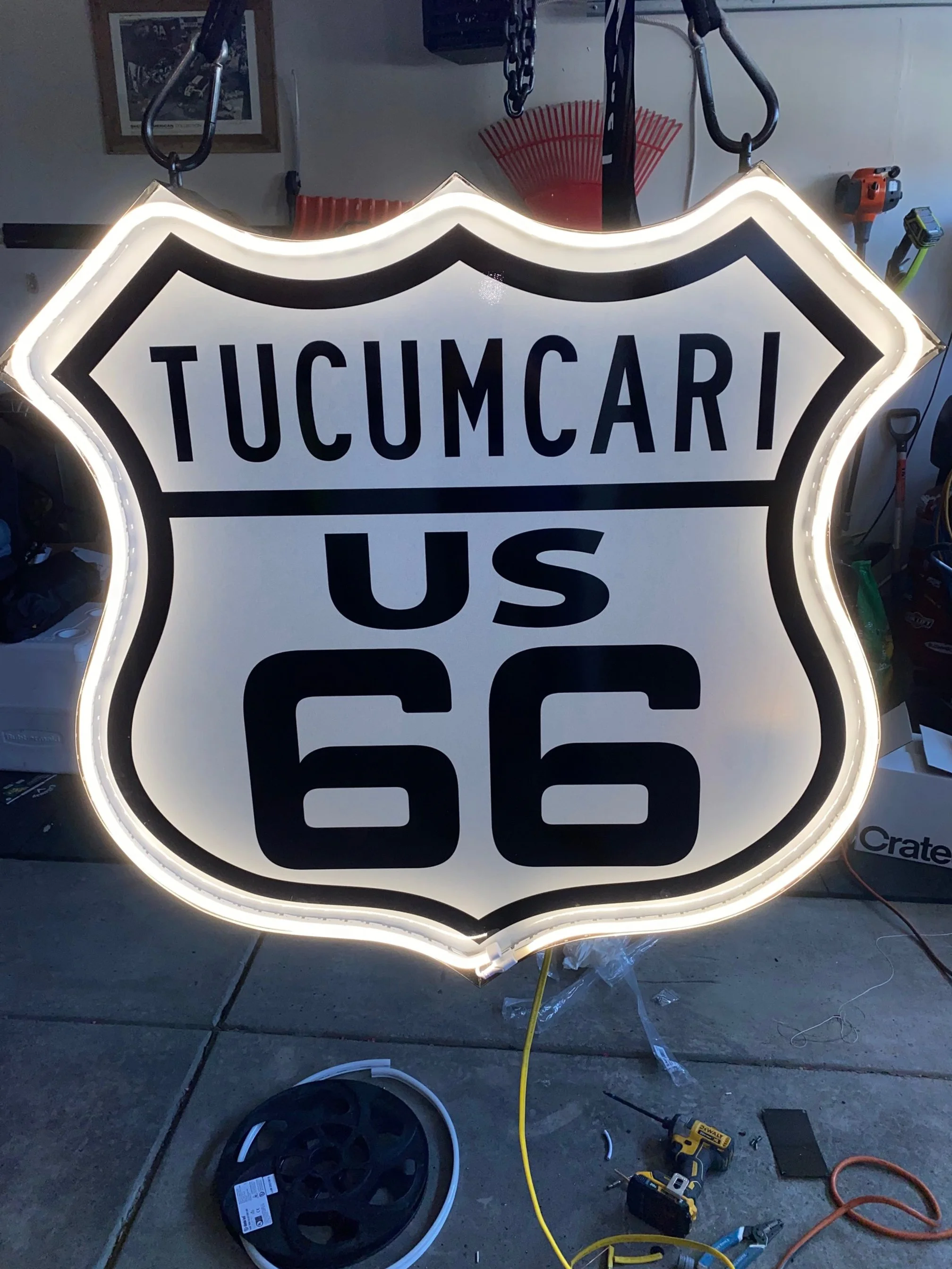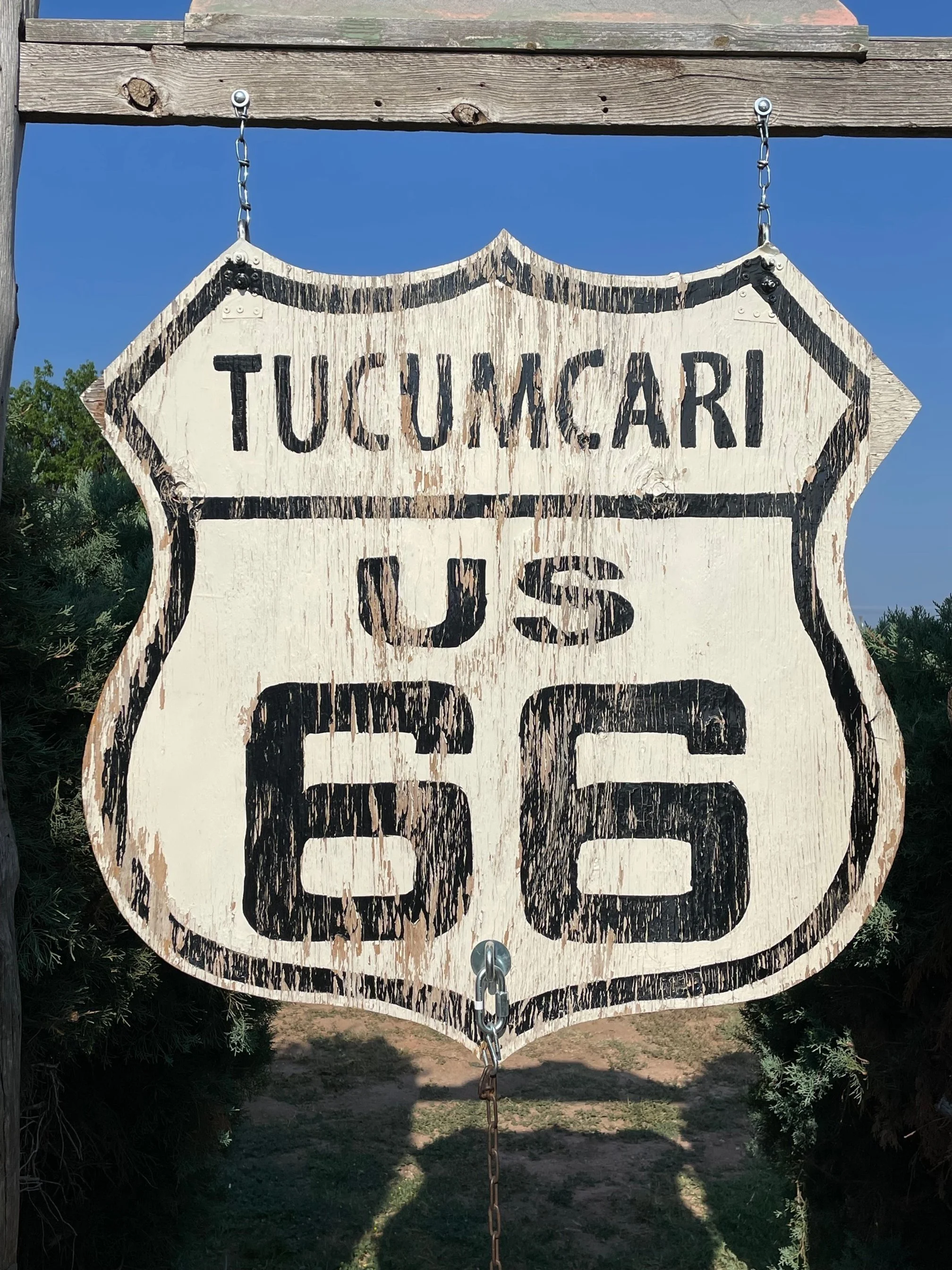 Restored double sided Tucumcari Route 66 Shield, greets guess traveling both directions on Historic Route 66.