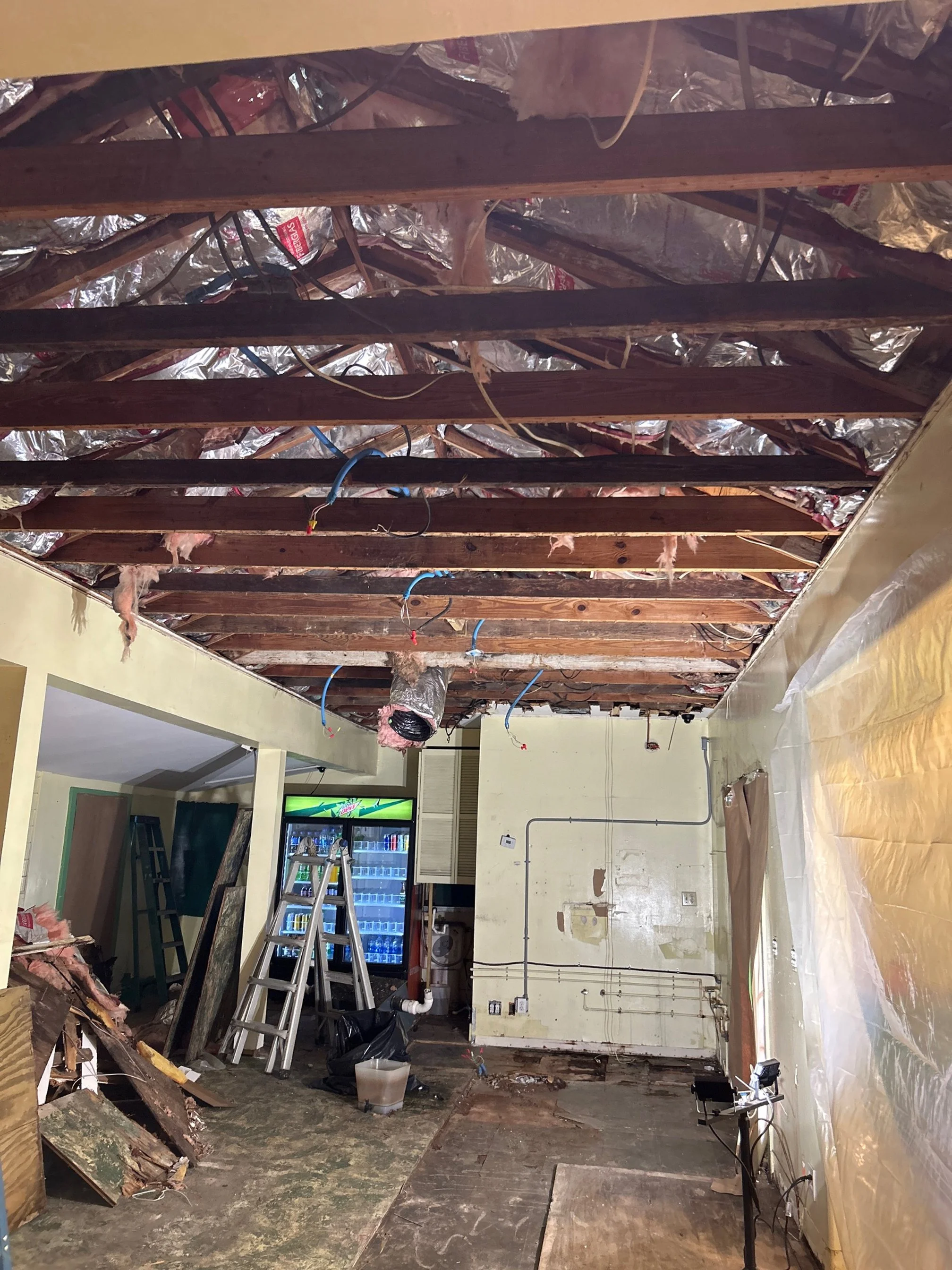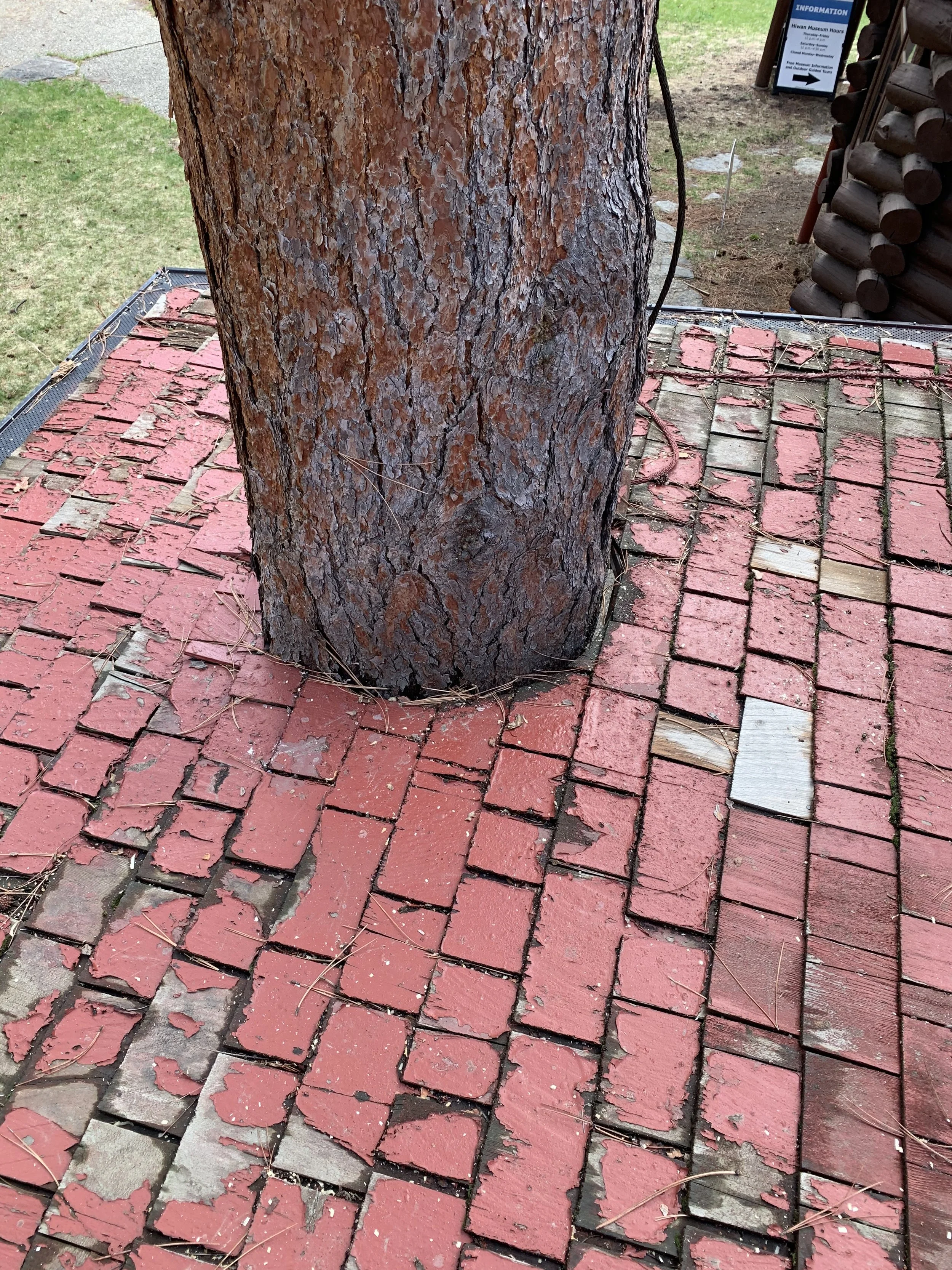 Due to climate change, the area around Evergreen Colorado started experiencing powerful Derechos. These winds flexed the trees, now 250 years old, against the foundation causing cracking and failure. Roof penetrations were to small after years of growth.